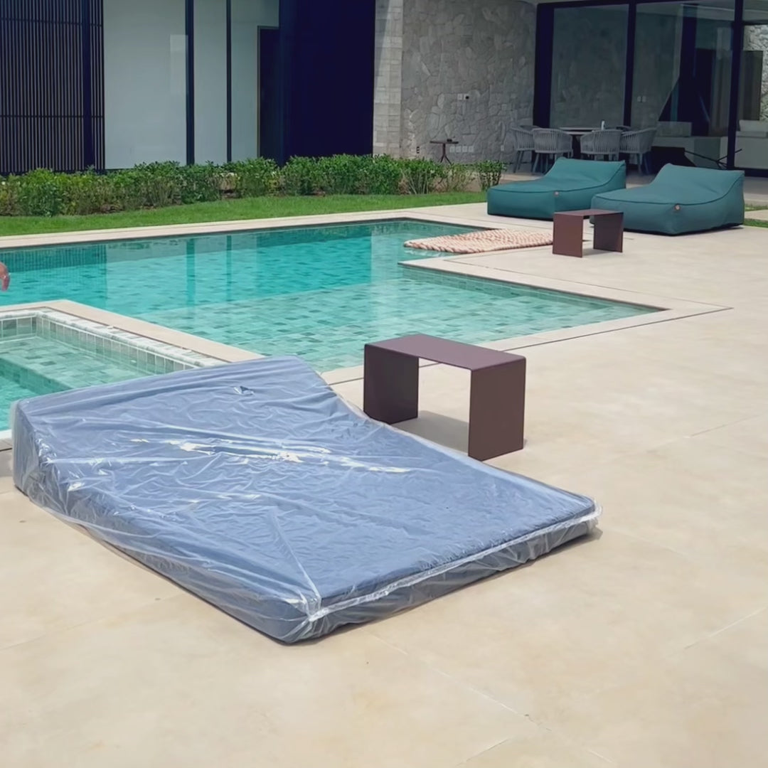 Todo o nosso mobiliário é próprio para área externa e diferentes tipos de piso. O material é de alta qualidade, garantindo a utilização no sol e na chuva com resistência e conforto.