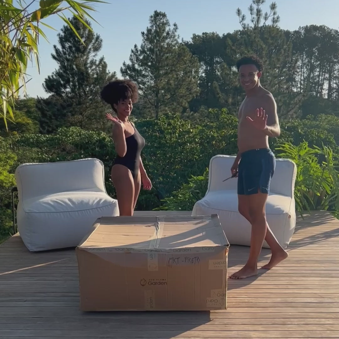 Projetados para resistir às ações do tempo, os Puffs de Jardim podem ficar expostos ao sol e a chuva. A tecnologia dos puffs garantem a ele repelência a água, proteção UV e anti-cloro, e mais!