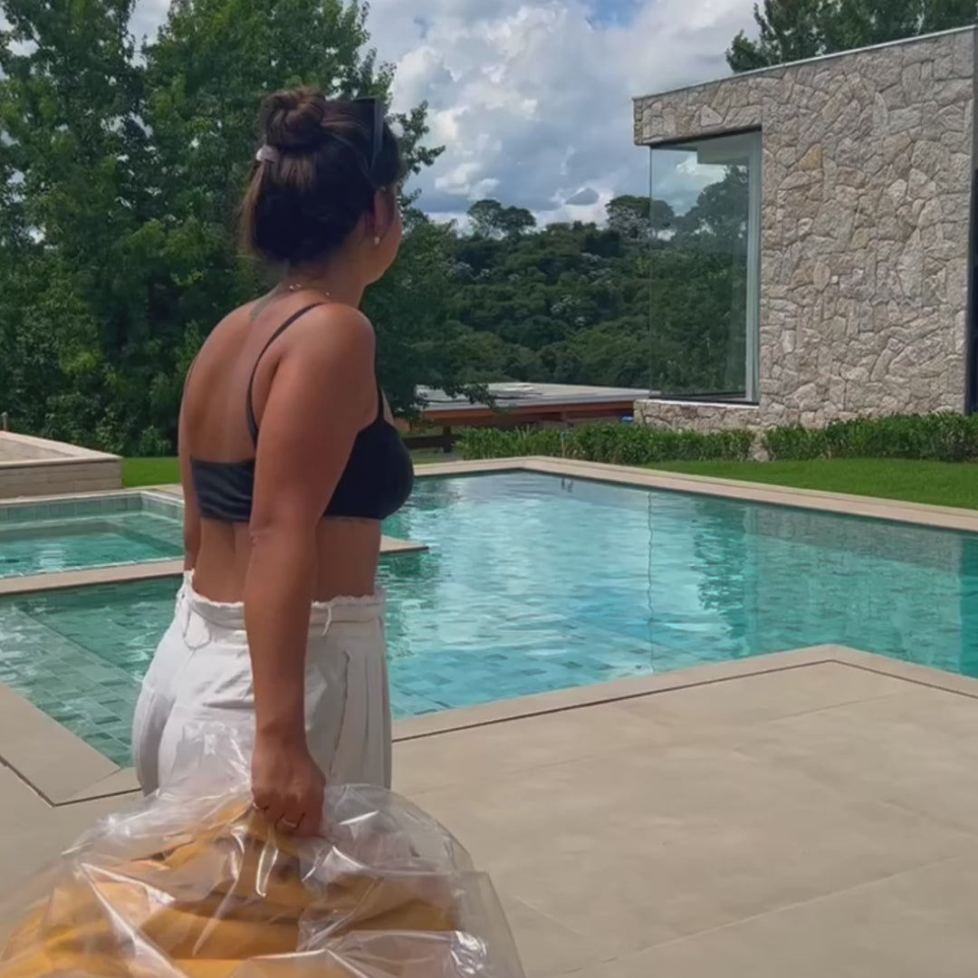 Não é recomendado o uso de óleos corporais e bronzeadores durante o uso dos produtos, pois estes podem manchar o tecido.